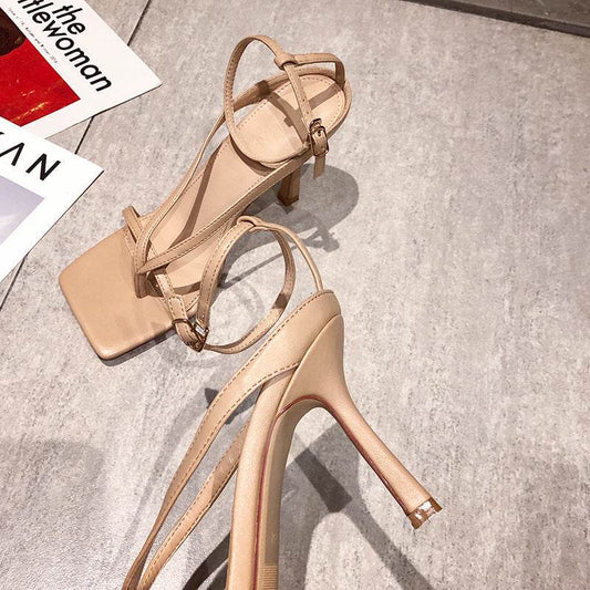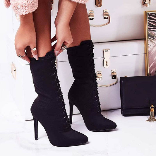 Spring And Autumn Women's Shoes Nubuck Leather Waterproof Lace-up High Heels