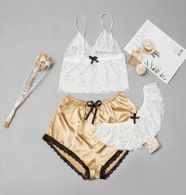 At Mubimart, we are committed to providing high-quality, stylish, and comfortable lingerie that makes you feel confident and elegant. Our Elegant Satin Lingerie Lace Shorts Set is designed to offer the perfect blend of luxury and comfort, making it an essential addition to your wardrobe. Order Now and experience the elegance and comfort of our premium lingerie set!