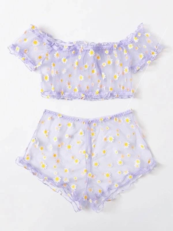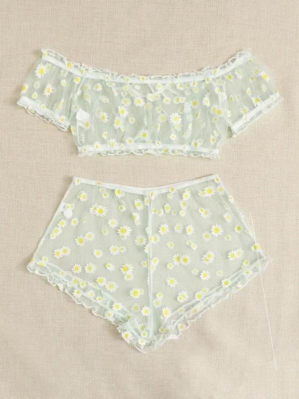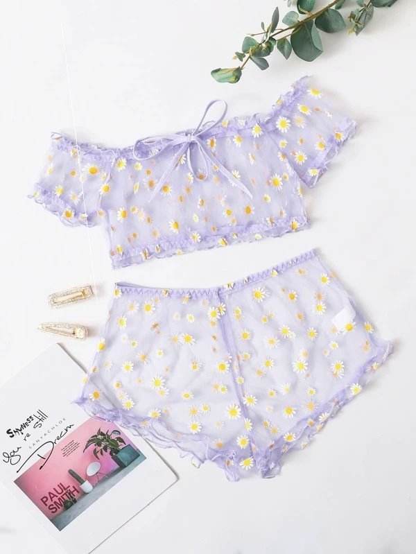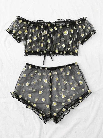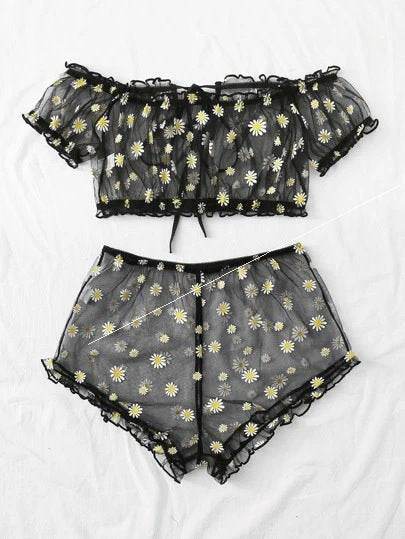 Women's Mesh Printed Lingerie Set