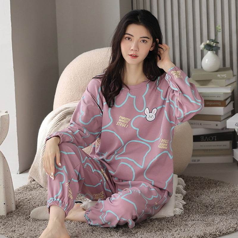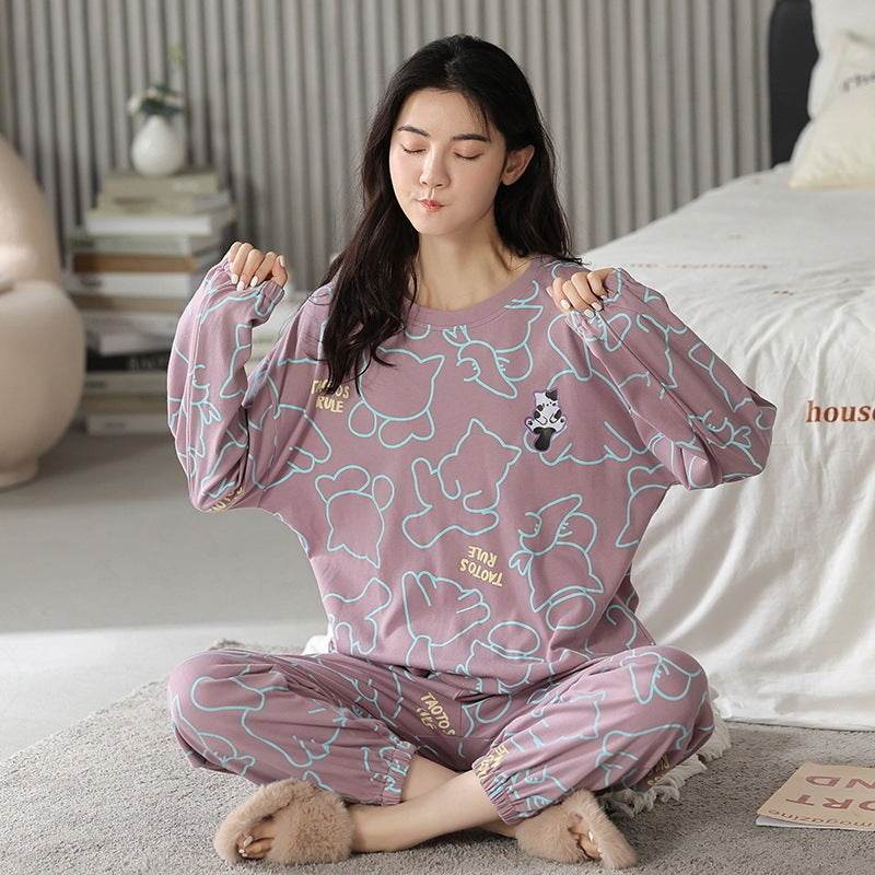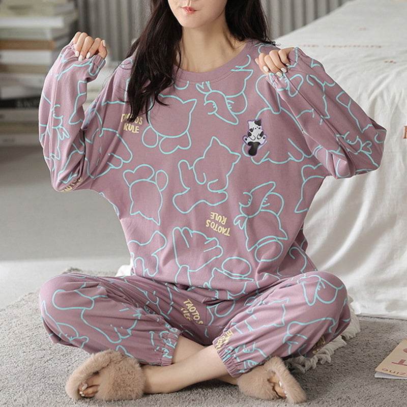Loose Print Pajamas Women Autumn Winter Pyjama Set Long Sleeves And Trousers Elegant Sleepwear Girl Loungewear Home Clothes