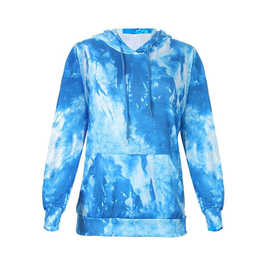 Long-Sleeved Plus Size Tie-Dye Printed Hooded Sweatshirt - Mubimart