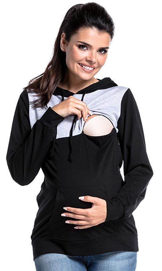 Hooded Colorblock Maternity Nursing Top Sweatshirt - Mubimart