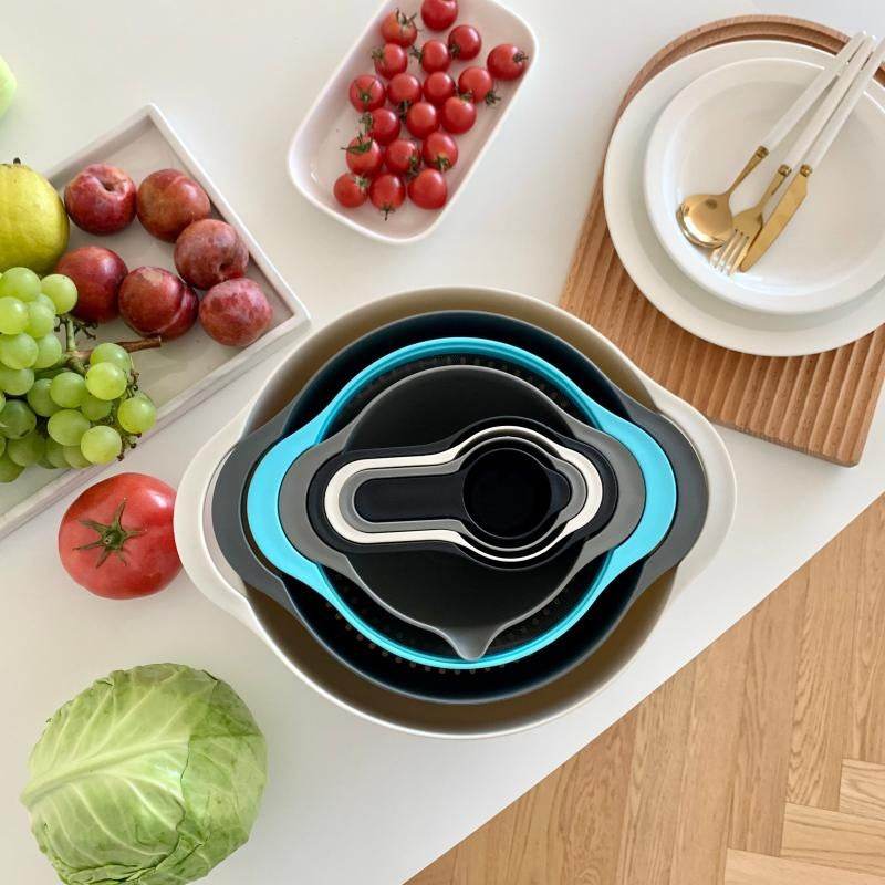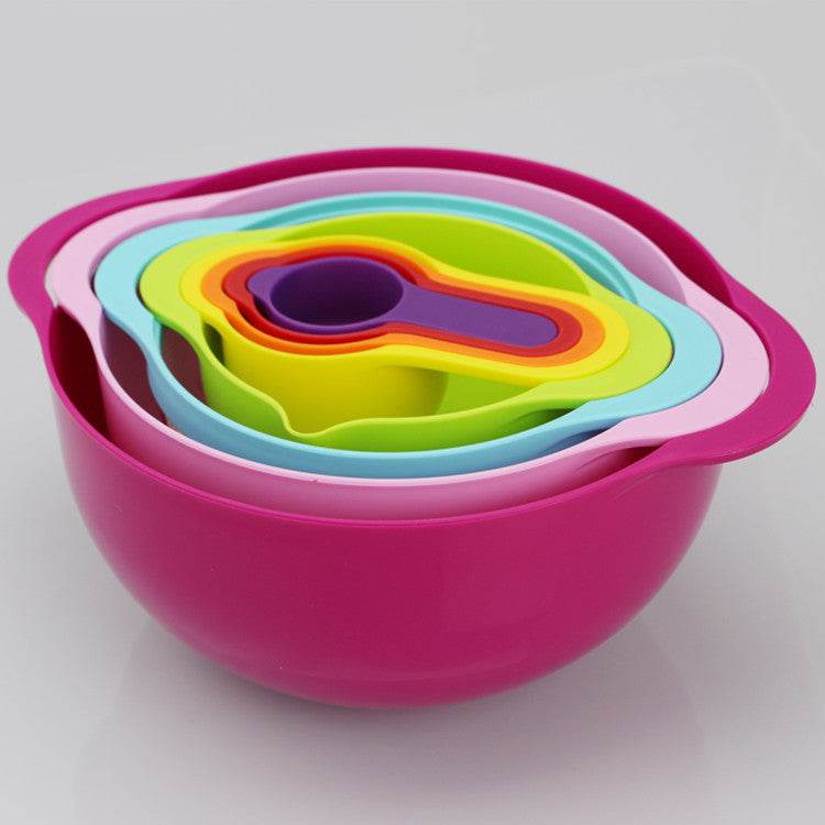 Rainbow Salad Plastic Bowl, Measuring Cup, Measuring Spoon, 8-Piece Set