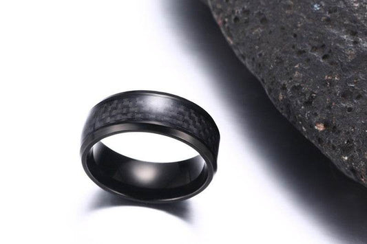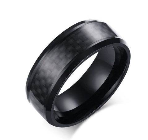 Black Carbon Fiber Inlay Men's Wedding Brand Ring Stainless Steel Jewelry Dropshopping 8mm