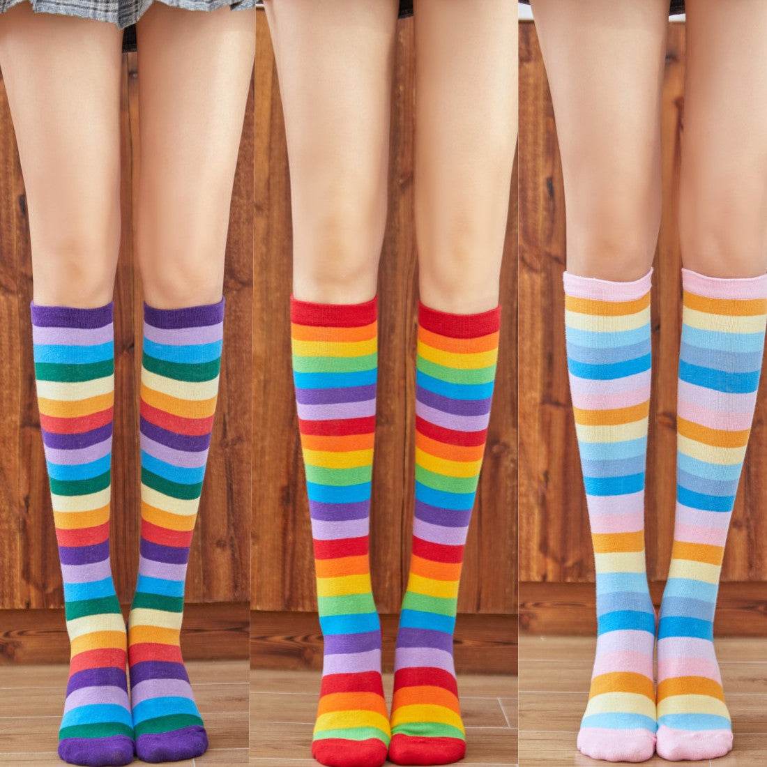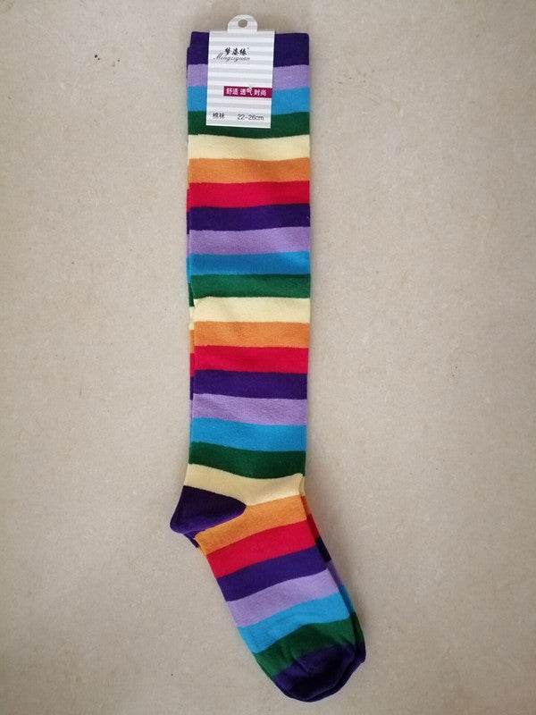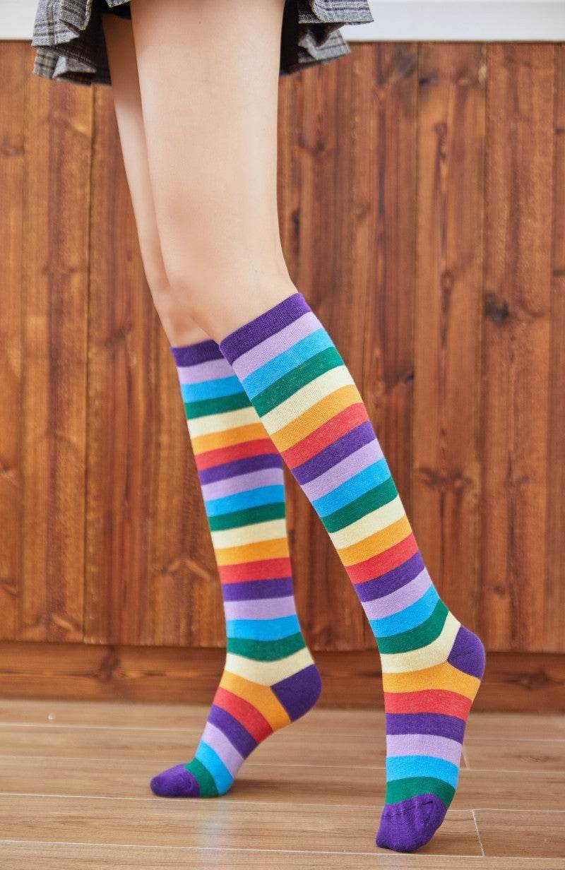 Cotton Colorful Tube Socks Knee Length Rainbow - Mubimart