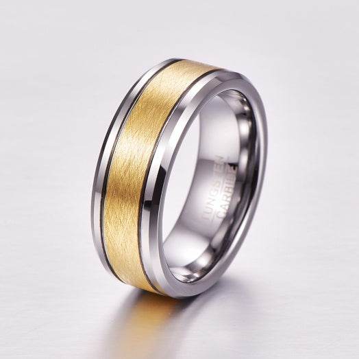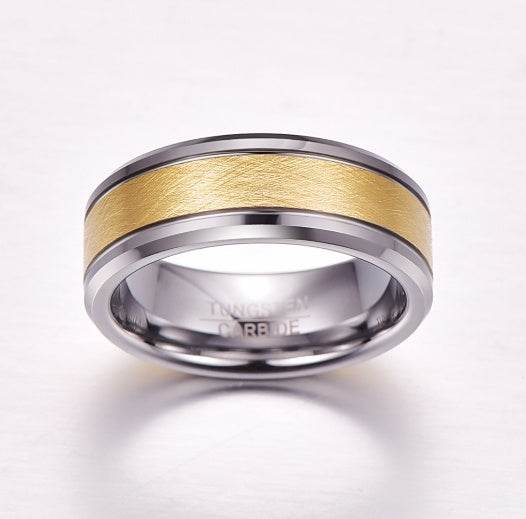 Men's 8mm Gold Color Brushed Center Two Grooves Tungsten Carbide Wedding Band Rings Beveled Edge - Mubimart