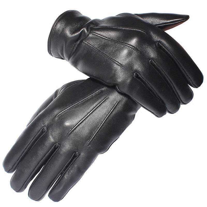 Leather Gloves Men Winter Warmth Thickened Plus Velvet Touch Screen Sheepskin Button Gloves Men