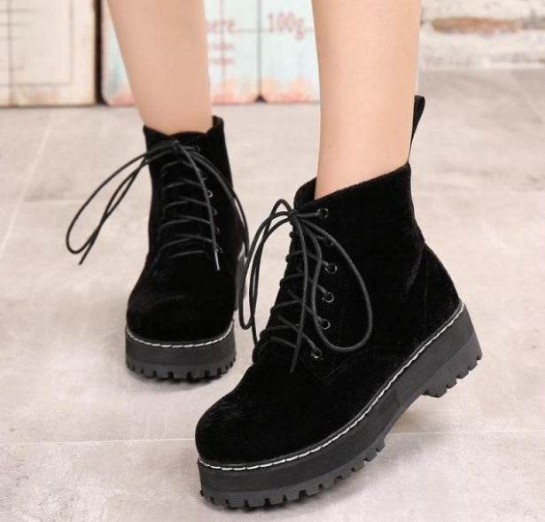 Vintage boots velvet straps ankle boots female tendon thick Martin boots