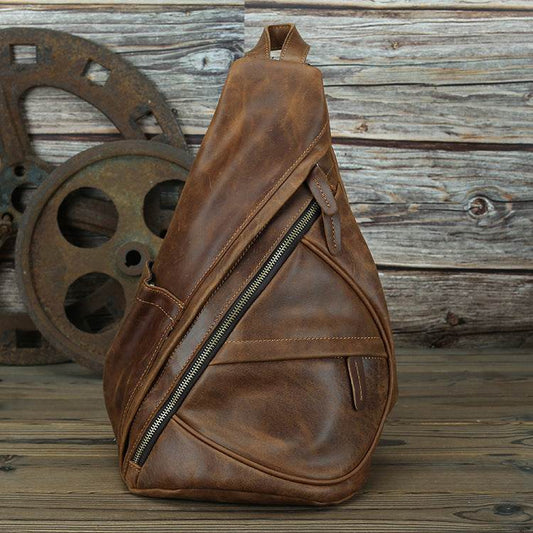 LACHIOUR Mens Genuine Leather Chest Bag Men - Mubimart