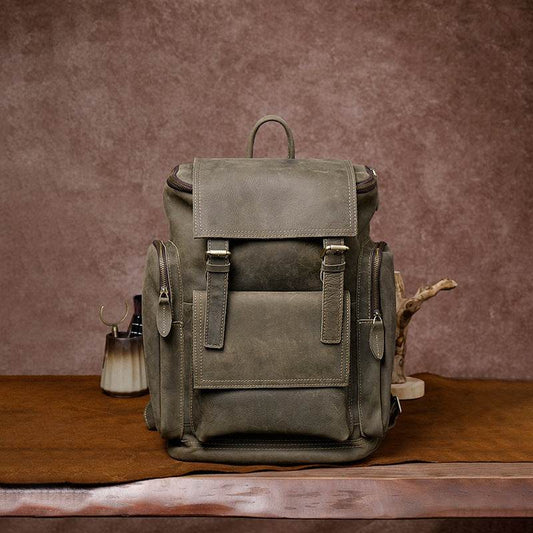 Retro Crazy Horse Leather Mens Backpack male computer bag Large Capacity 15.6 inch laptop bags genuine leather Travel Backpacks