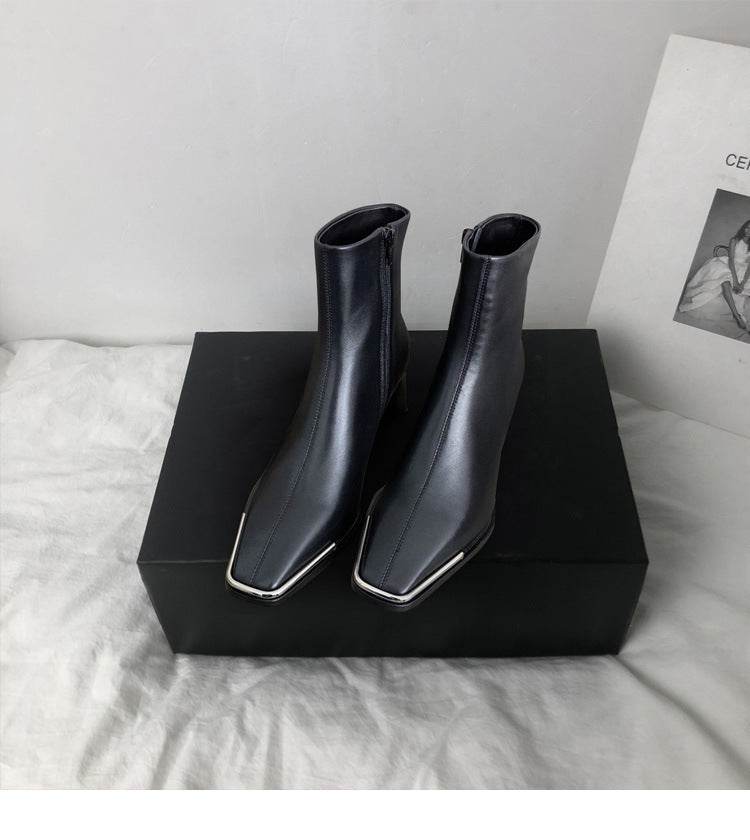 All-leather Square-Toe Zipper Thick Heel Single Boot Ankle Boots