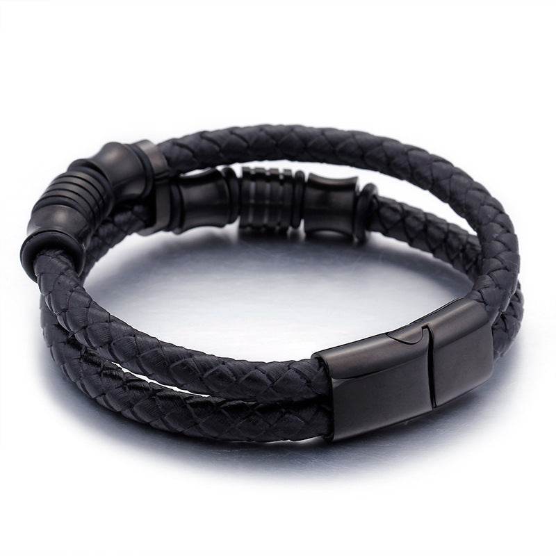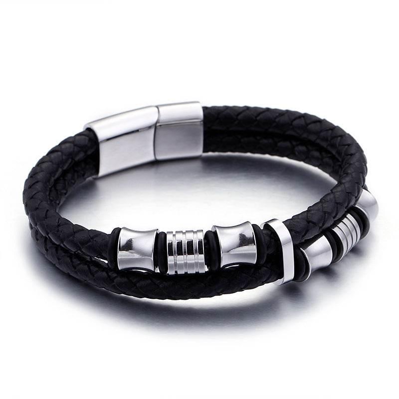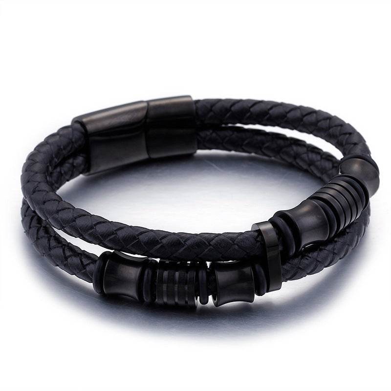 Gold Color Stainless Steel Leather Bracelet Men Black Mens Leather Wrap Bracelets Jewelry Wristband With Magnet Clasp