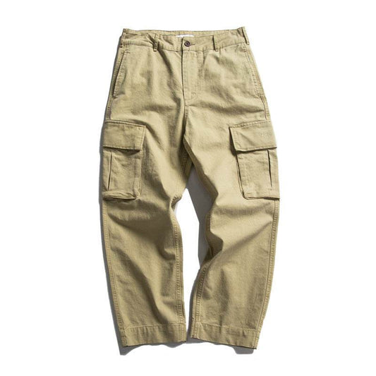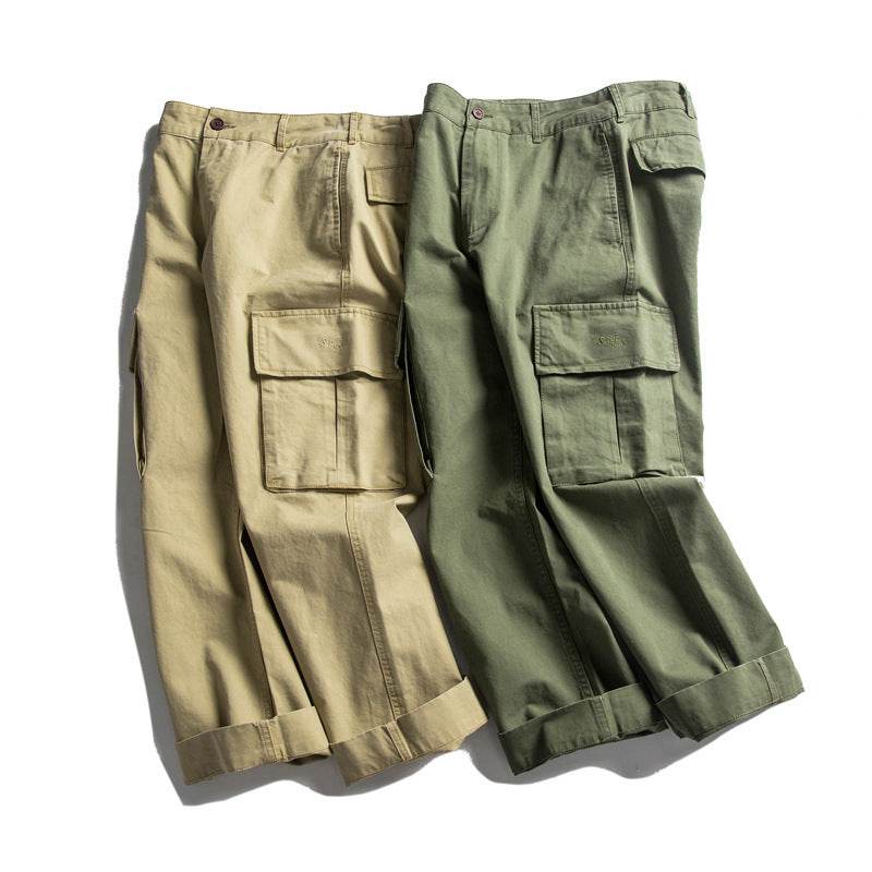 Wu Hang Japanese Original Solid Color Basic Overalls Khaki Loose Straight Trend Casual Pants Z322 - Mubimart