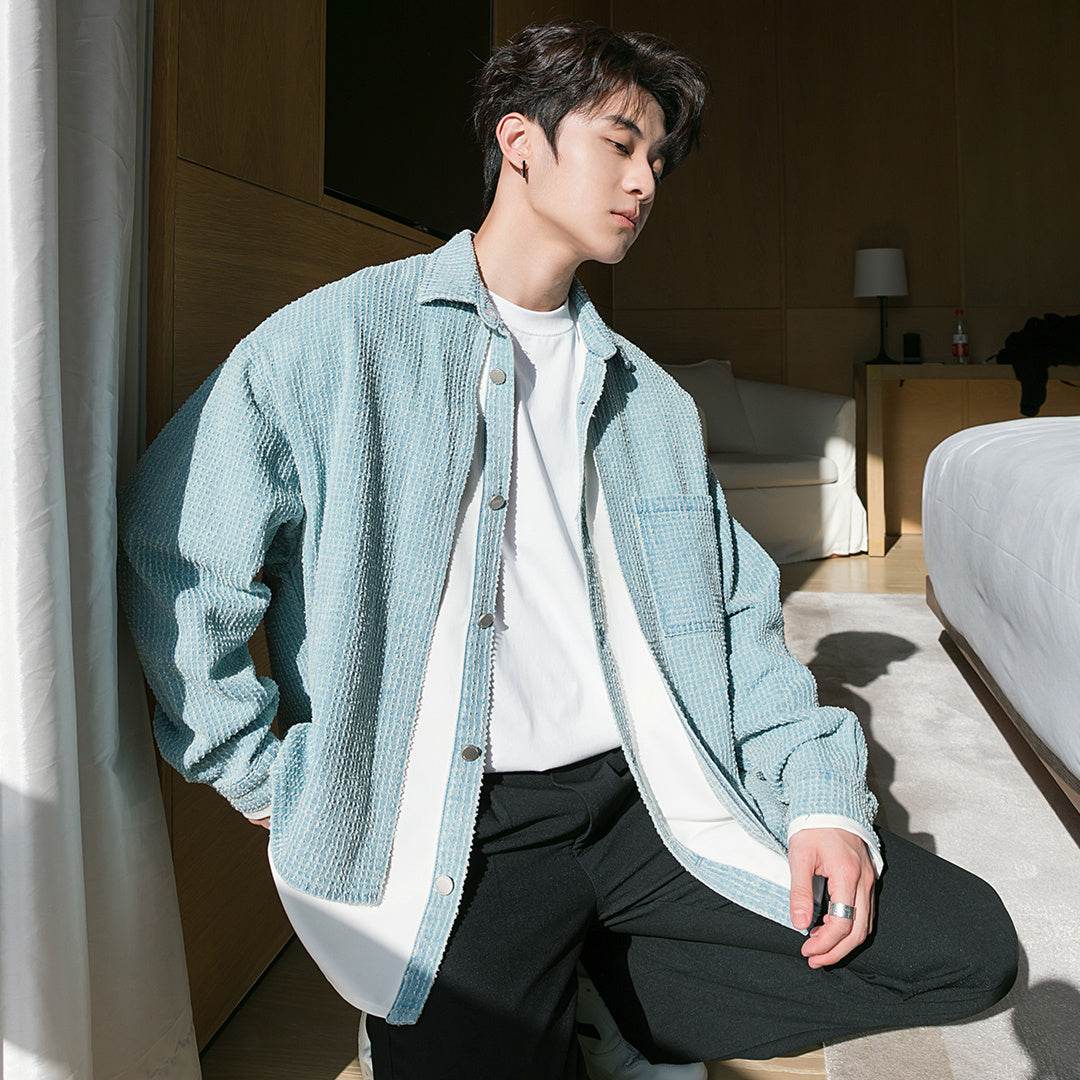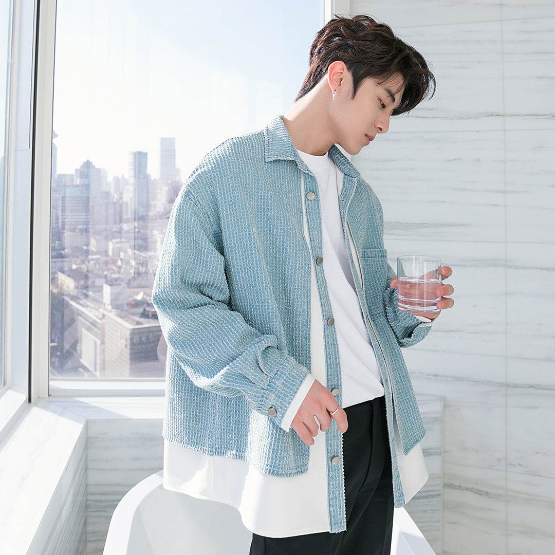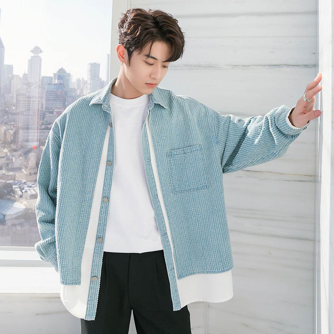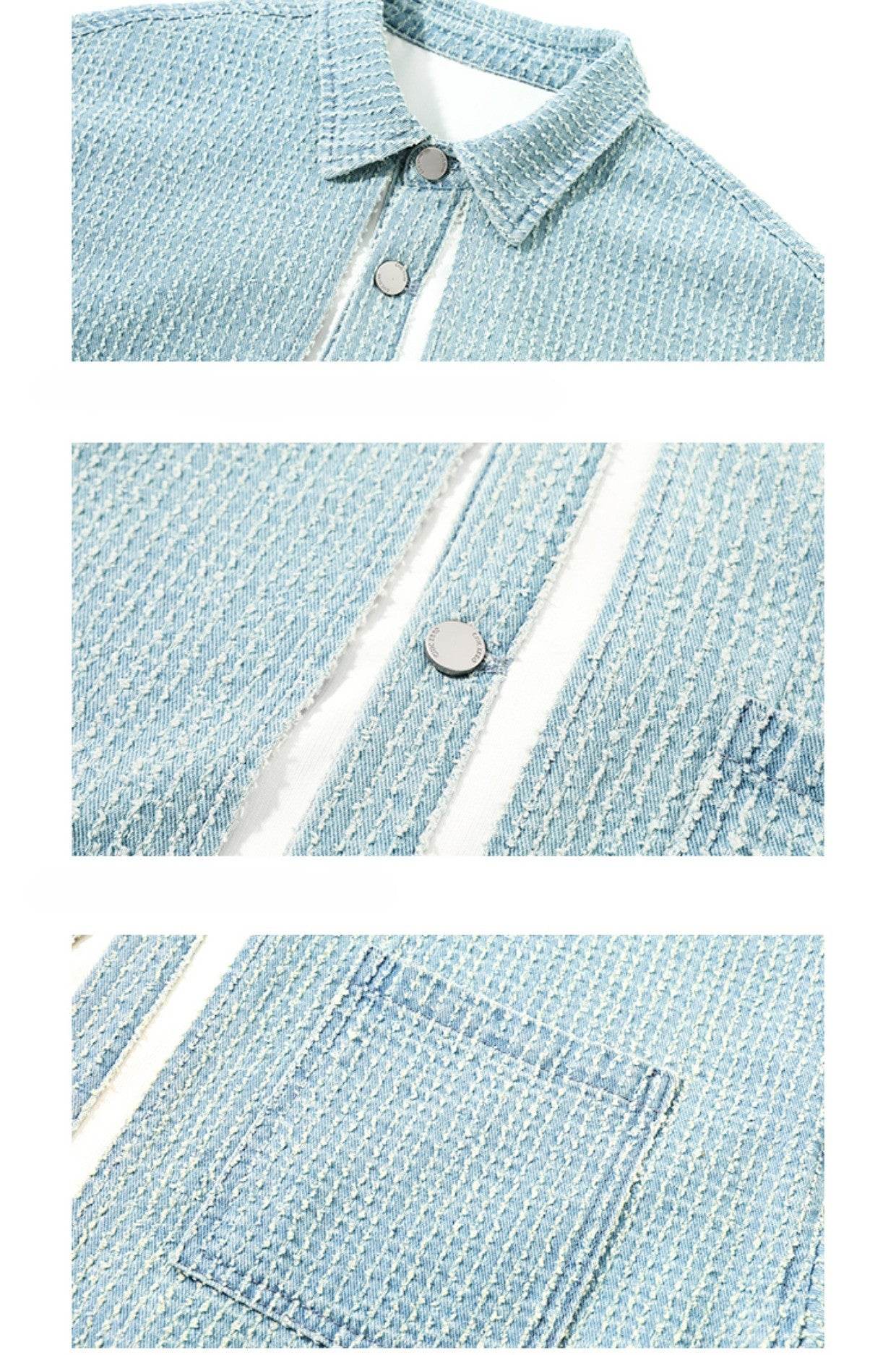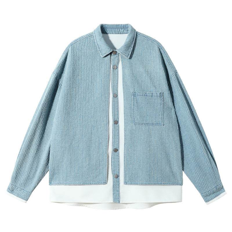 Mens Fake Two Piece Patchwork Denim Jacket Top