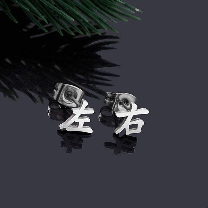 Chinese Word Right Left Stud Earrings For Women Men - Mubimart