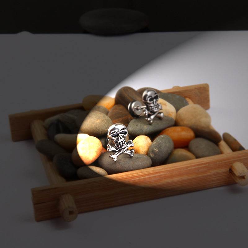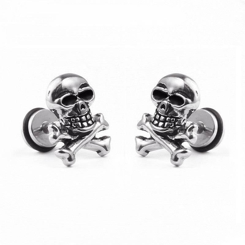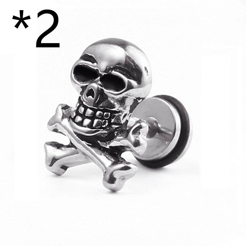 Cross-Border E-Commerce Youpin Titanium Steel Skull Punk Hip Hop Rock Tide Dumbbell Earrings Earrings Men And Women Personality Jewelry - Mubimart