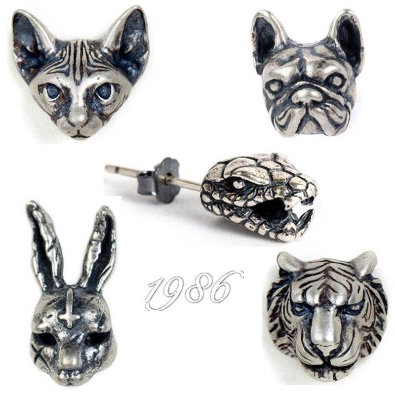 Dark Series S925 Silver Retro Stereo Animal Earrings For Men And Women Tiger Rabbit Shapi Dog Hairless Cat Earrings