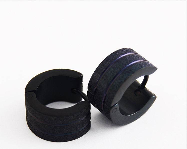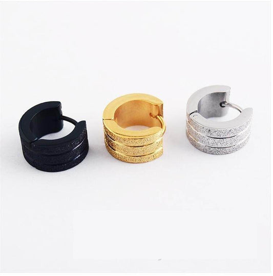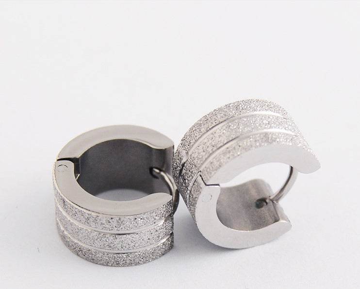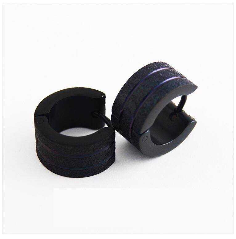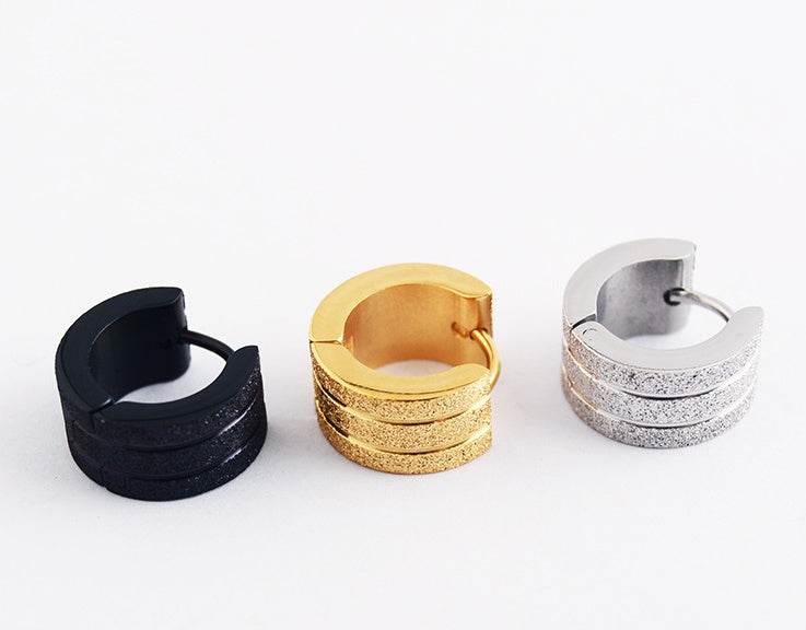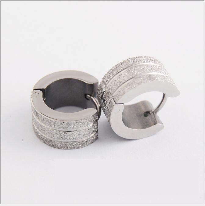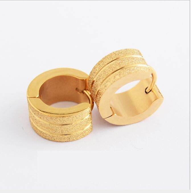 Stainless steel cutting line gold wide version earrings wholesale sandblasting sandblasting earrings titanium steel men and women earrings