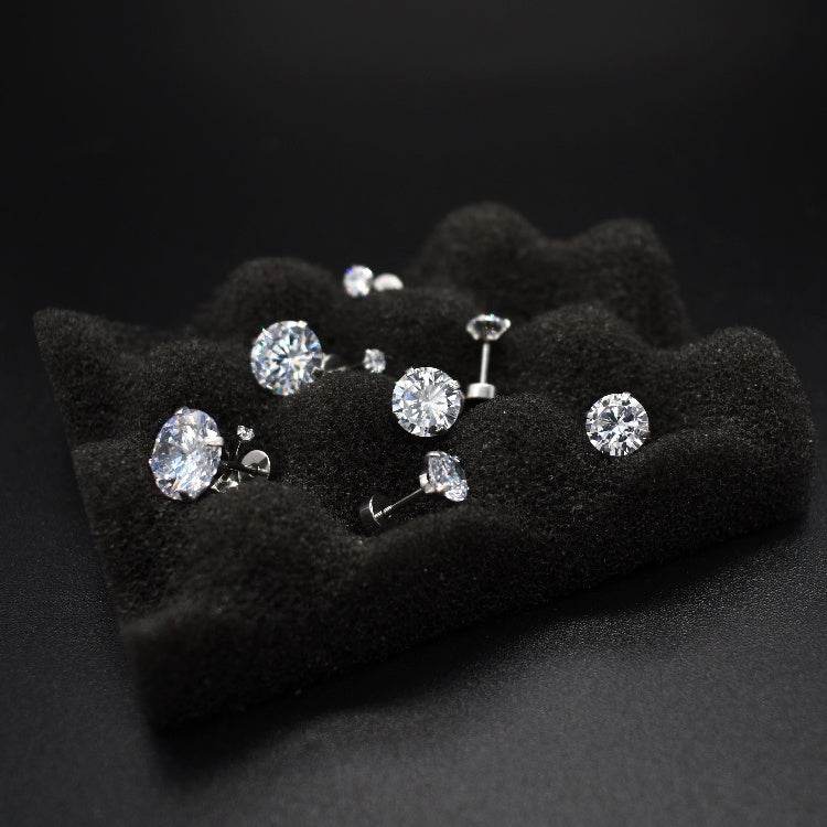 Titanium Steel Unisex Women Men Round Crystal Zircon Ear Studs Earrings