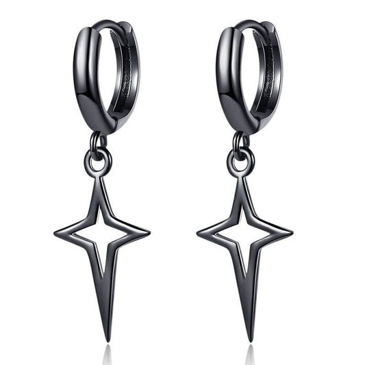 Hip Hip Men Earrings Jewelry Punk Silver Black Hollow Star Cross Pendant Small Hoop Stud Earrings For Women