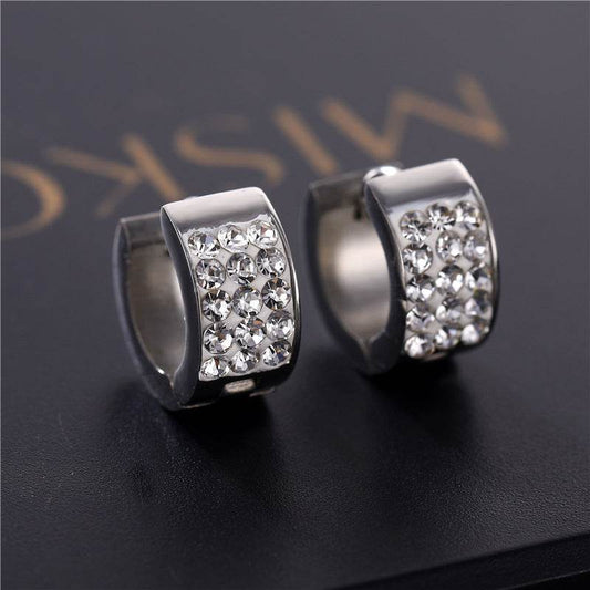 Fashion Titanium Steel Multi-row Rhinestone Zircon Stainless Steel Earrings For Men And Women