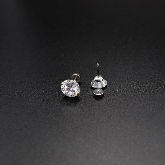 Titanium Steel Unisex Women Men Round Crystal Zircon Ear Studs Earrings