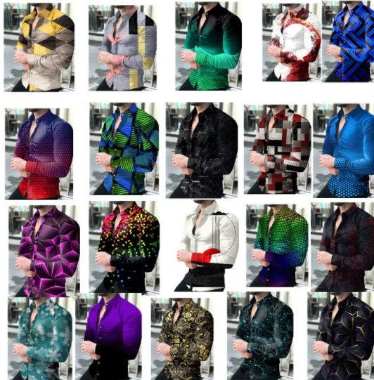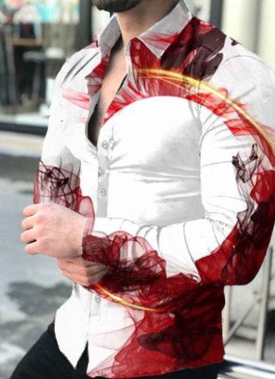 European And American Mens Printed Shirt Cardigan Longsleeved Shirt - Mubimart