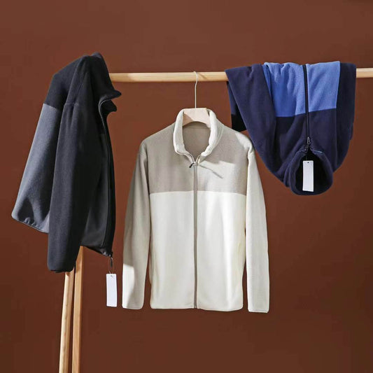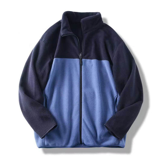Polar Fleece Zipper Jacket Jacket Fleece Sweater Coat Color Contrast Patchwork