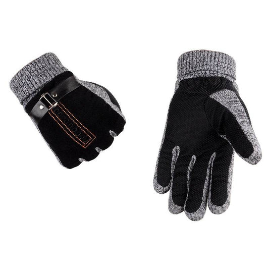 Mens Pigskin Gloves Winter Skiing Outdoor Riding Warmth Thickened Non Slip
