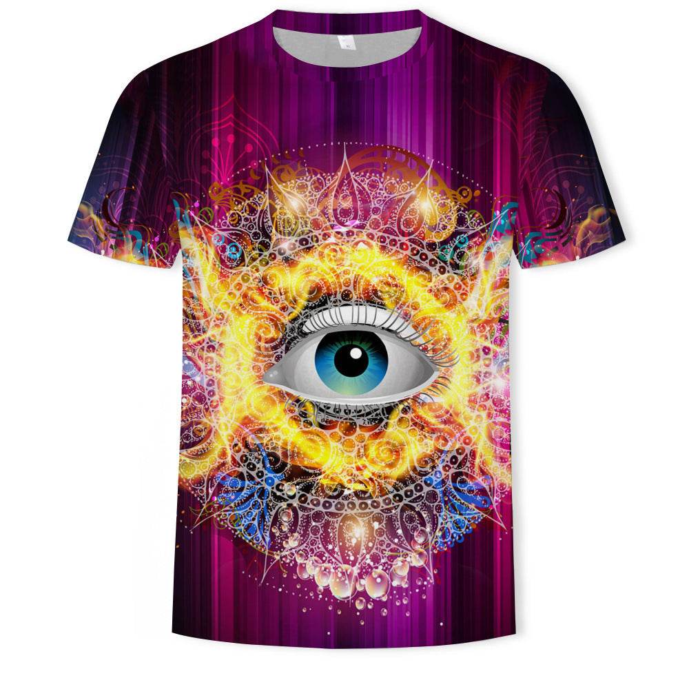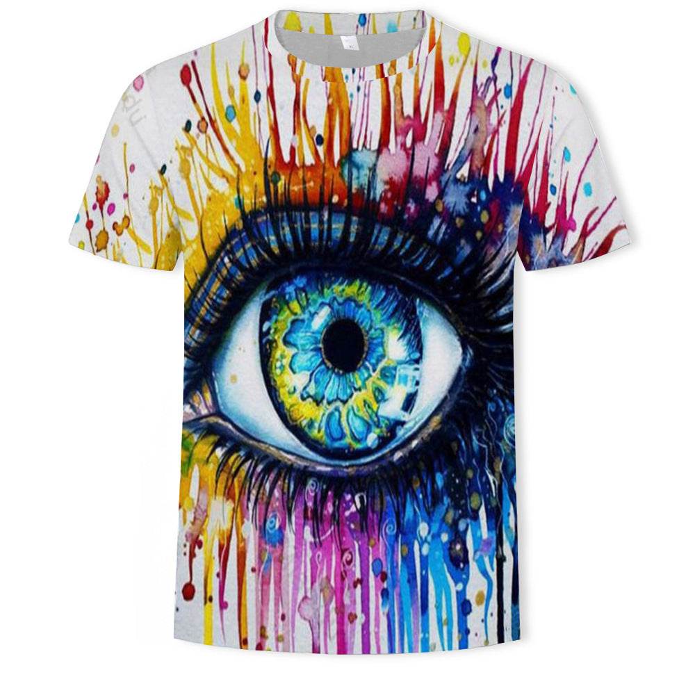 Mens Fashion Casual Digital Print Crew Neck T-shirt