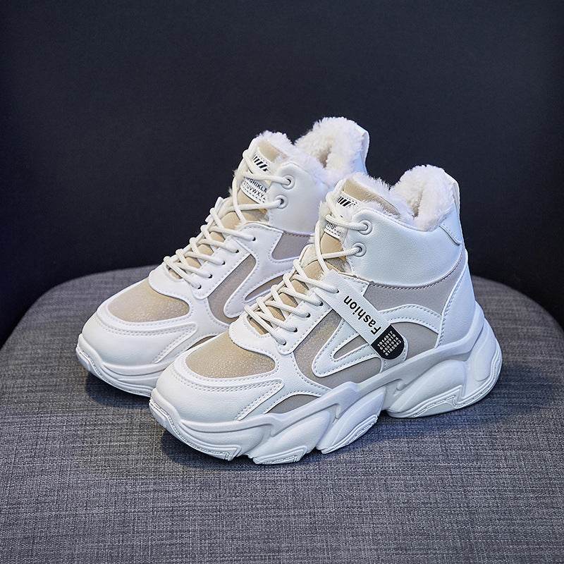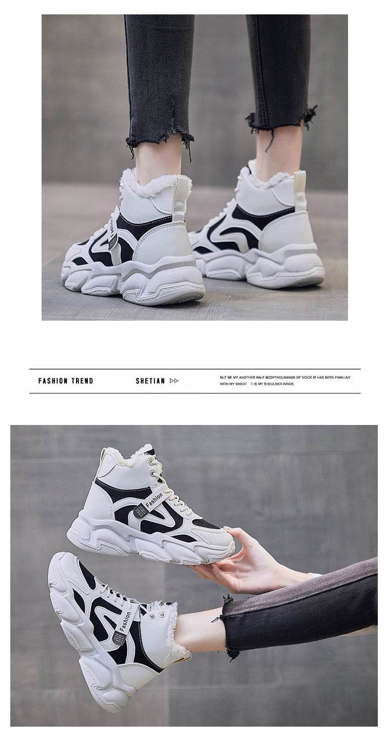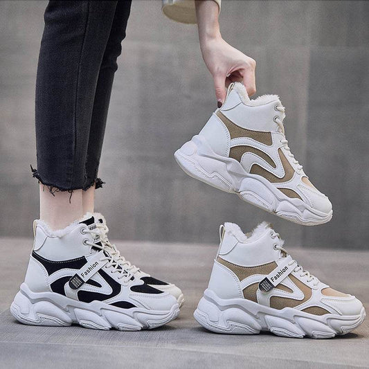 Fleece-lined Clunky Sneaker Women's Warm High Top Sneakers - Mubimart