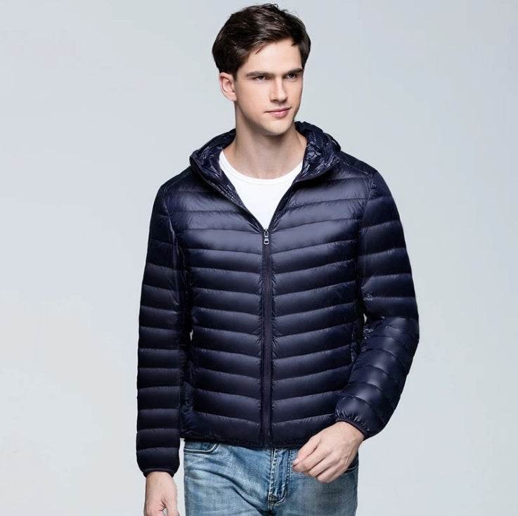 Autumn and winter new men's down jacket large size casual short paragraph collar thin men's down jacket - Mubimart