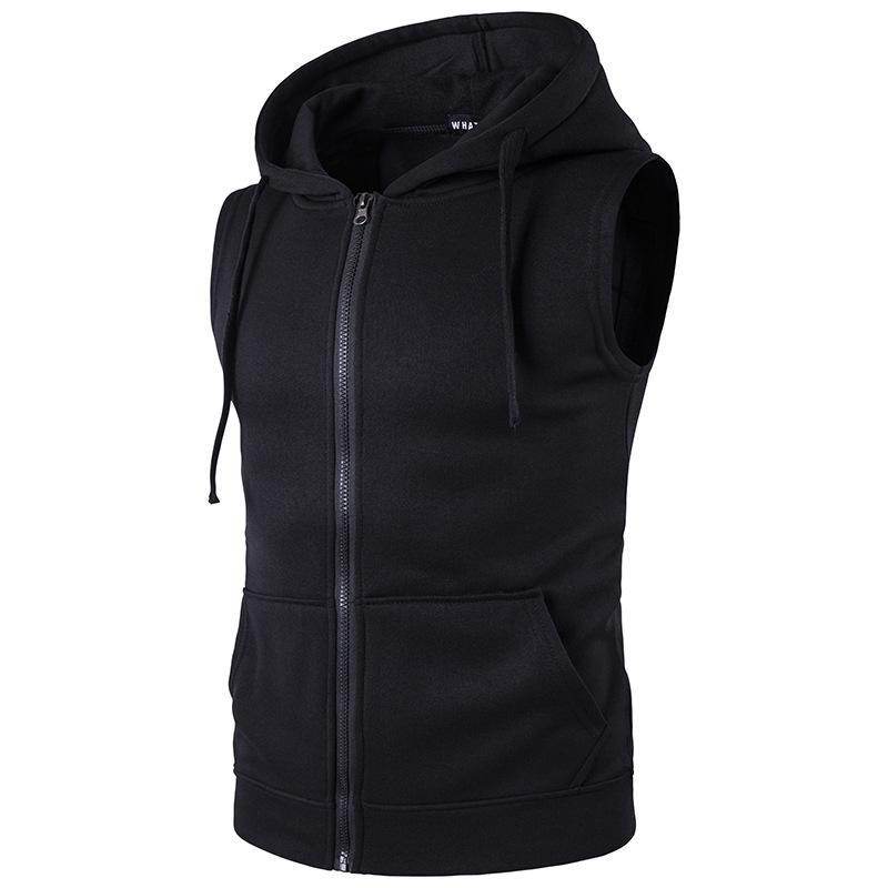 New Men's Sleeveless Cotton Zipper Hoodies - Mubimart
