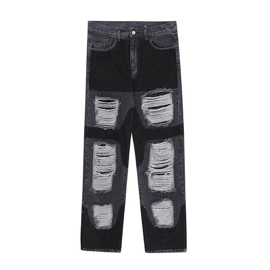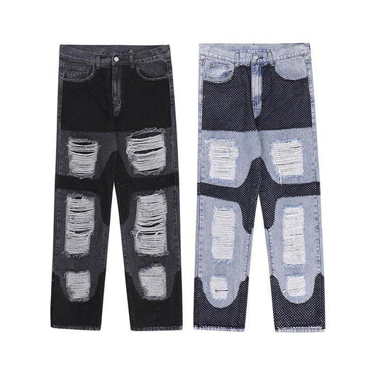 Men Trousers Individual Patched Pants Long Tight Fit Stacked Jeans For Mens Clothing