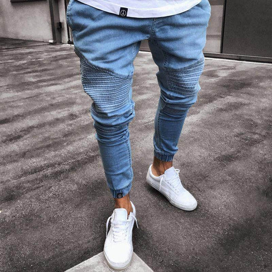 Mens Stretchy Ripped Biker Jeans - Mubimart