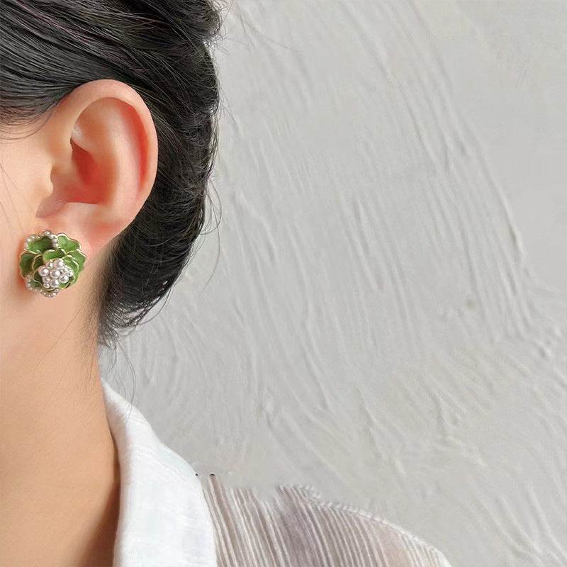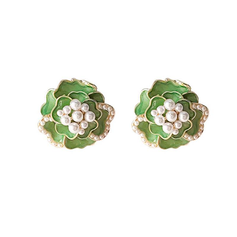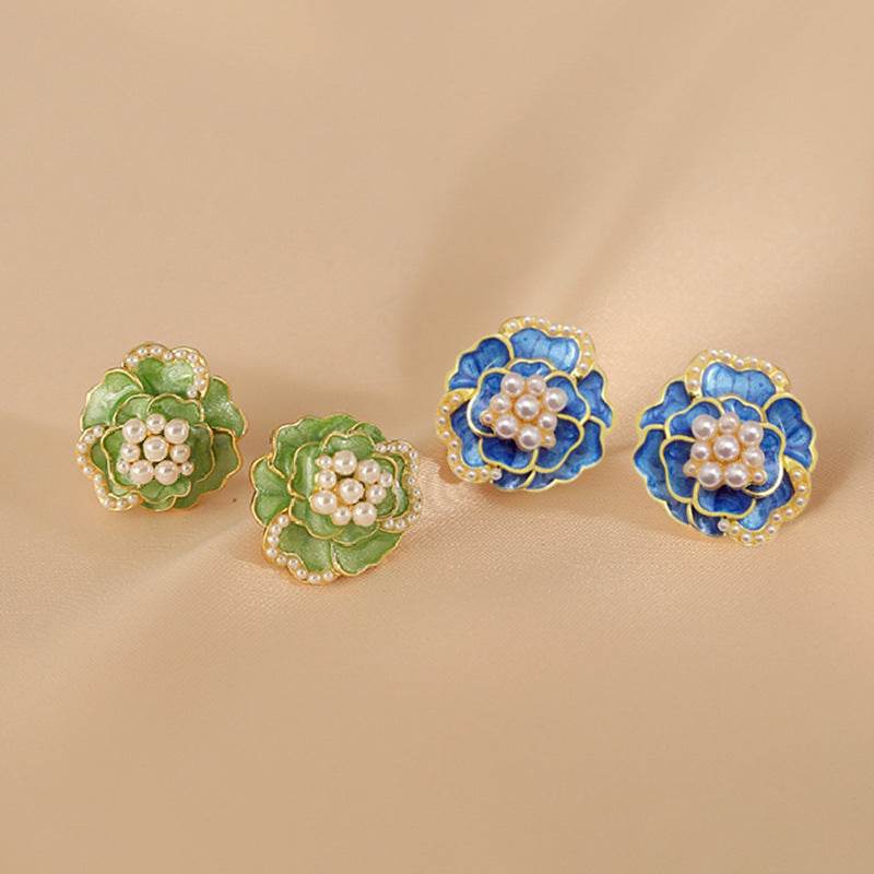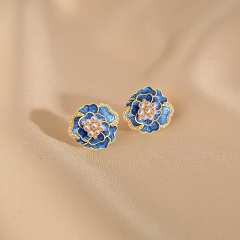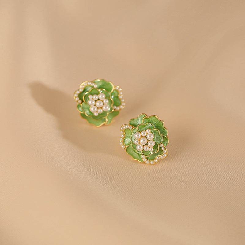 Sterling Silver Needle High-grade Temperament Camellia Pearl Ear Studs - Mubimart