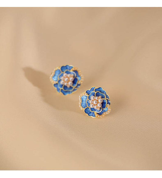 Sterling Silver Needle High-grade Temperament Camellia Pearl Ear Studs