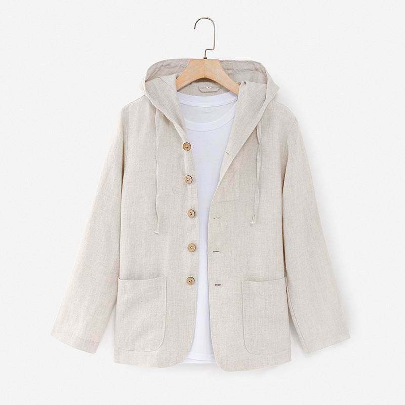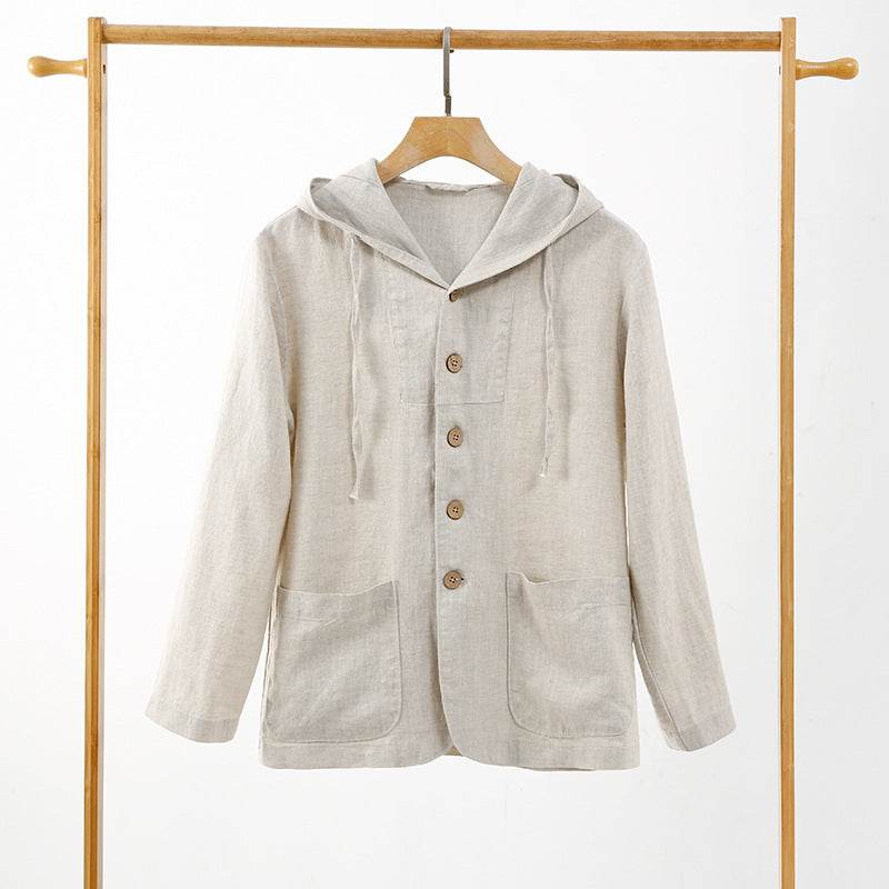 Linen Shirt Casual Linen Hooded Loose Breathable Jacket - Mubimart