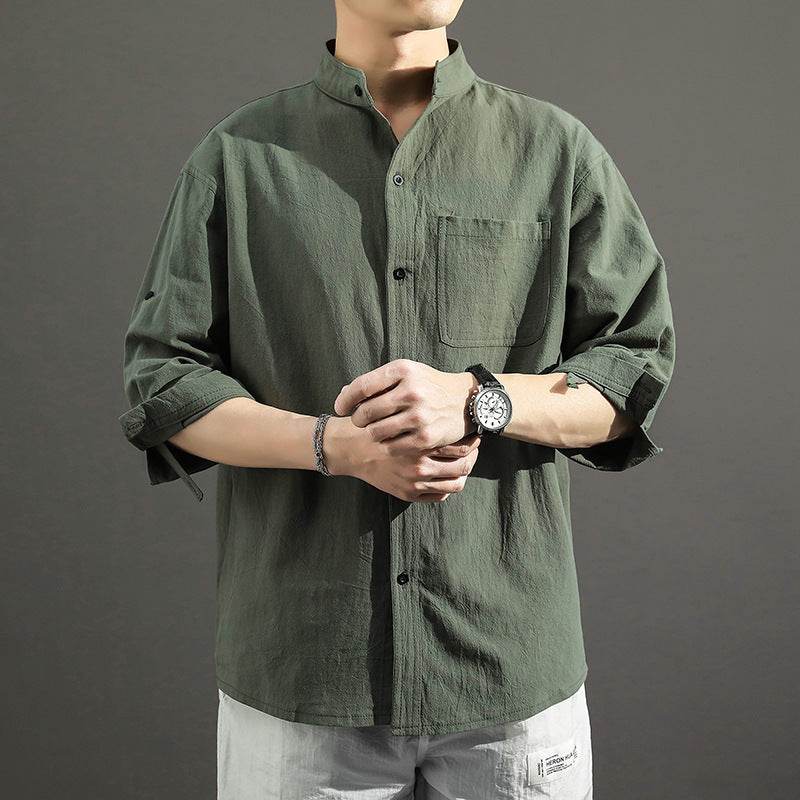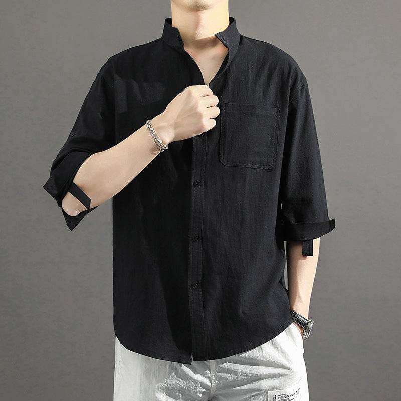 Linen Shirt Men's Casual Loose Stand Collar Cotton And Linen Shirt