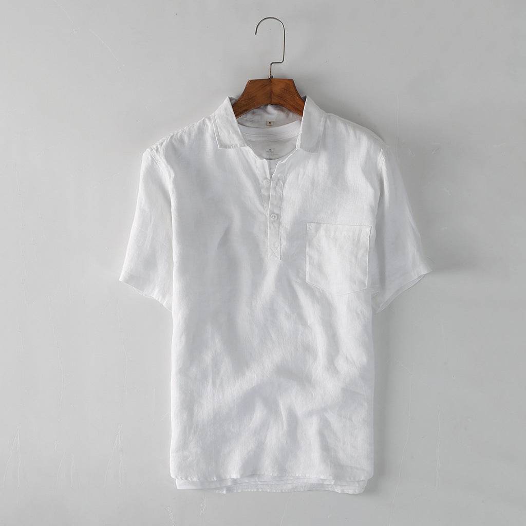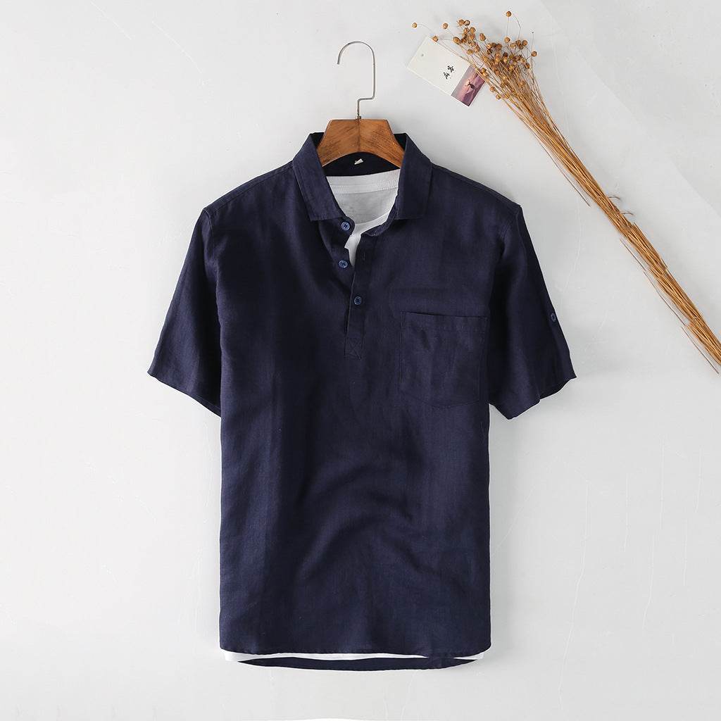 Ummer Men's Linen Shirt Simple Pullover Lapel Men's Linen Shirt C028