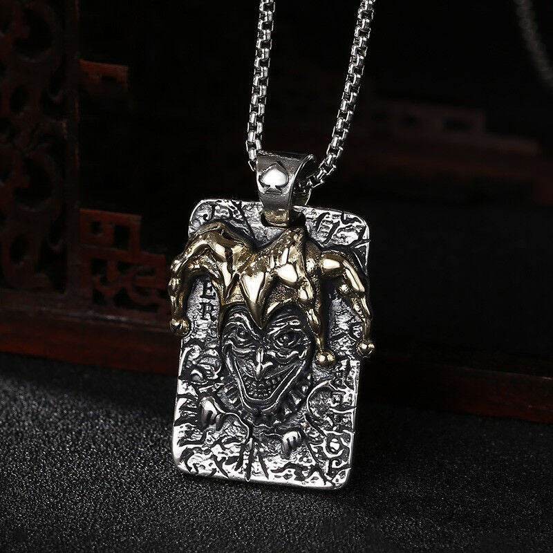 Mens Alloy Poker Clown Pendant Necklace Vintage