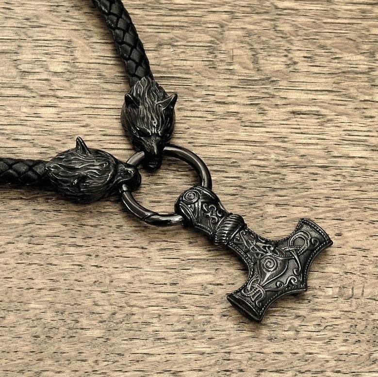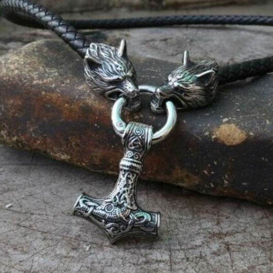 Mens Fashion Leather Necklace Compiled With Hammer Shape Pendant