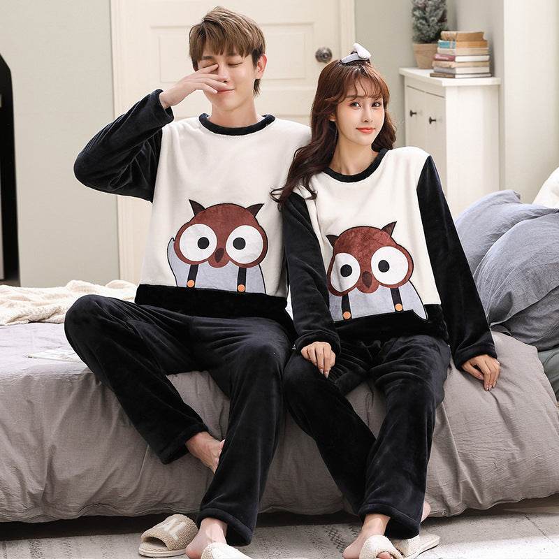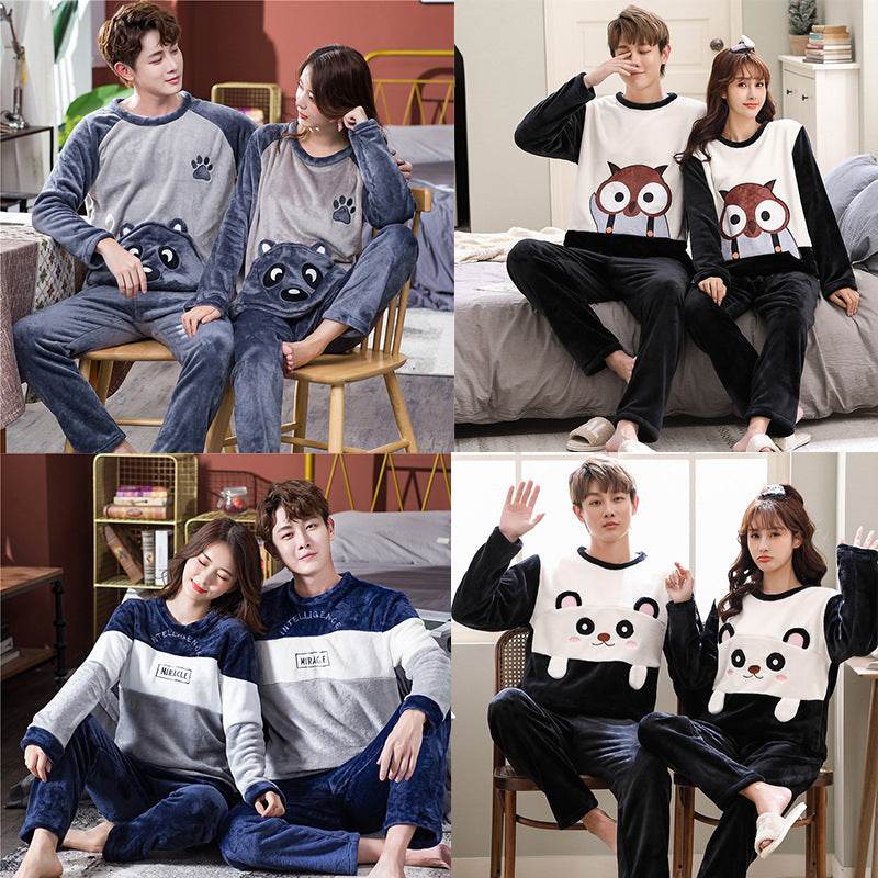 Female Spring, Autumn, Winter Coral Plush Couple Nightwear