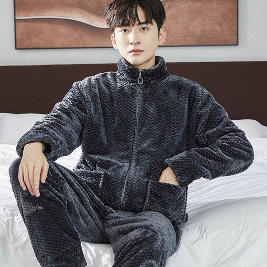 Pajamas Men's Jacquard Flannel Loose Fleece-lined Warm Loungewear - Mubimart