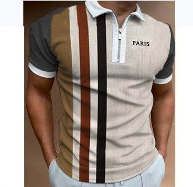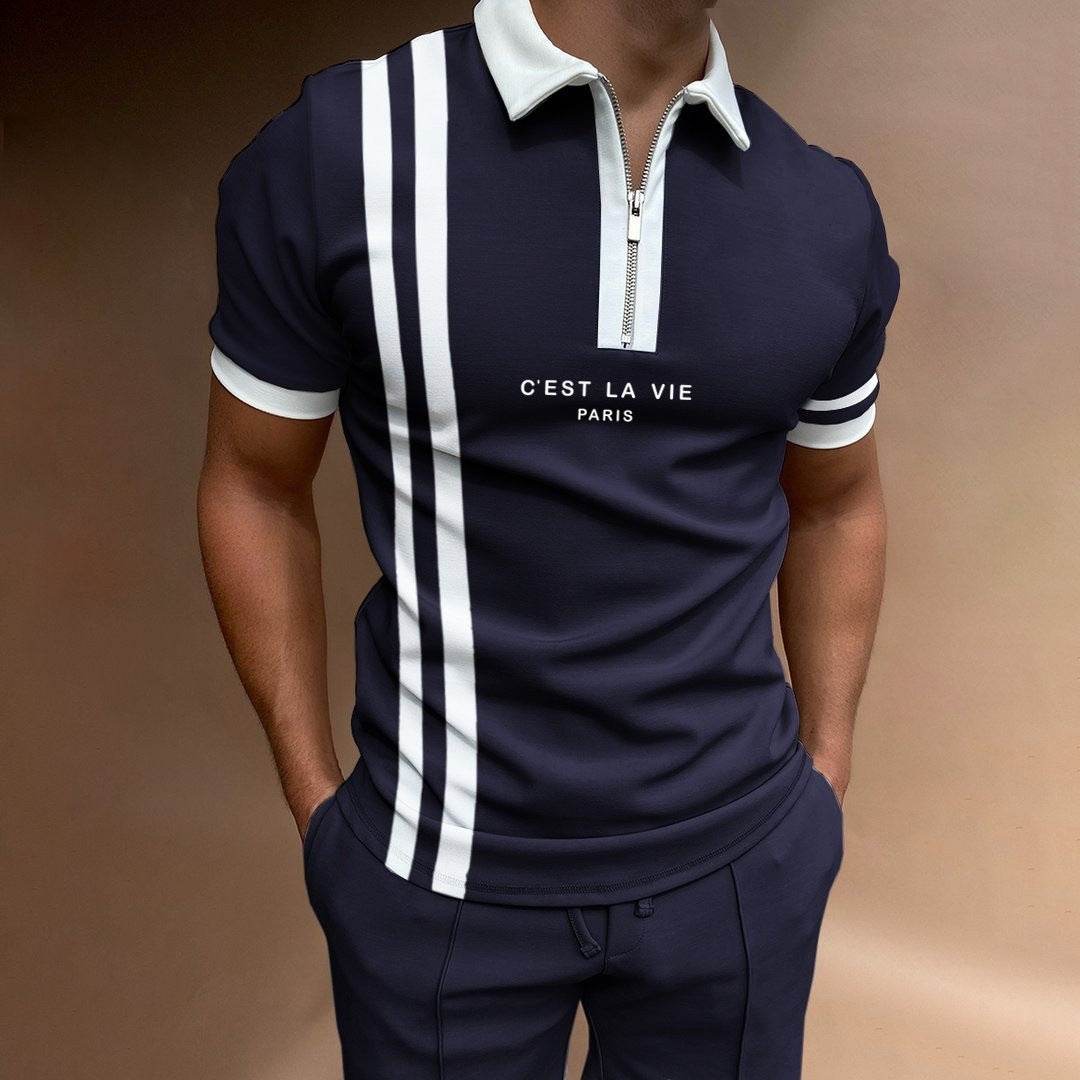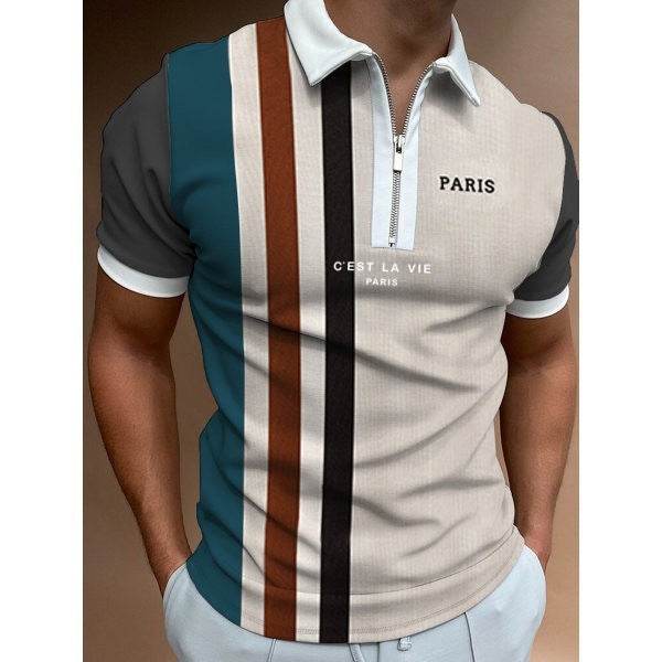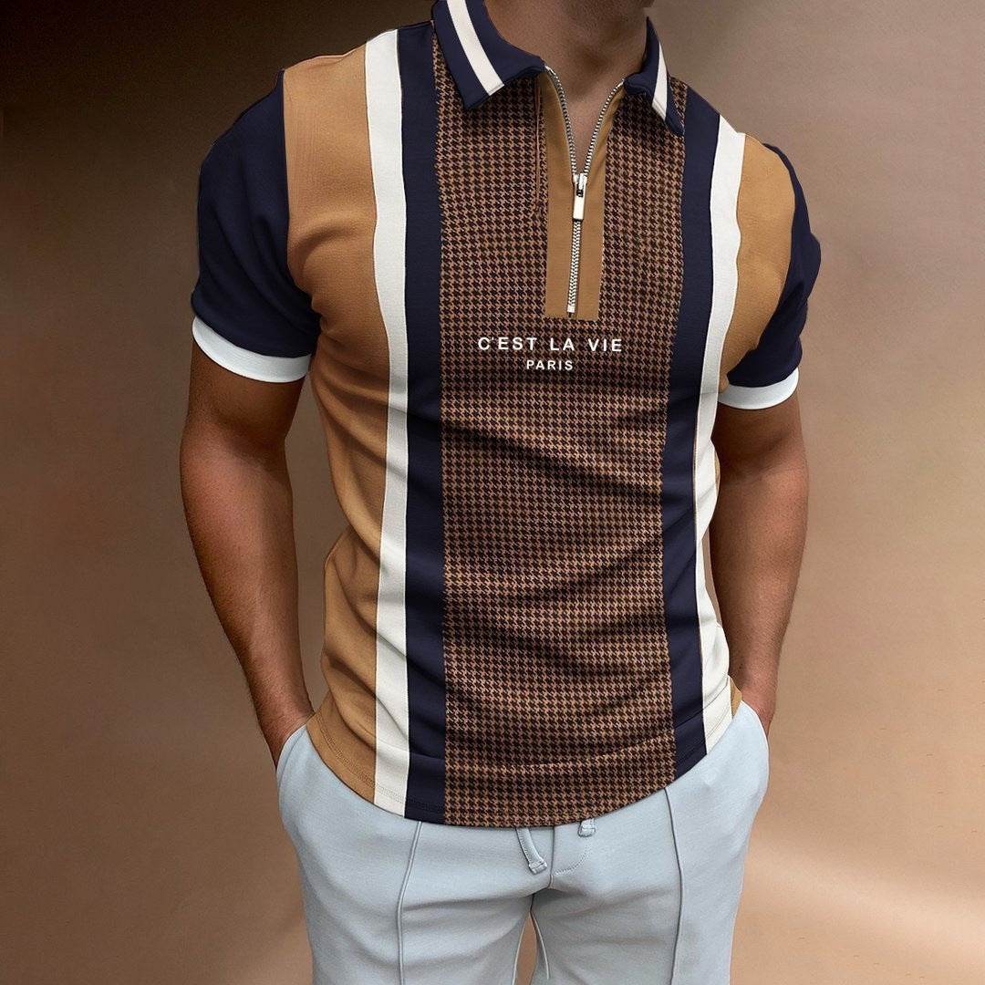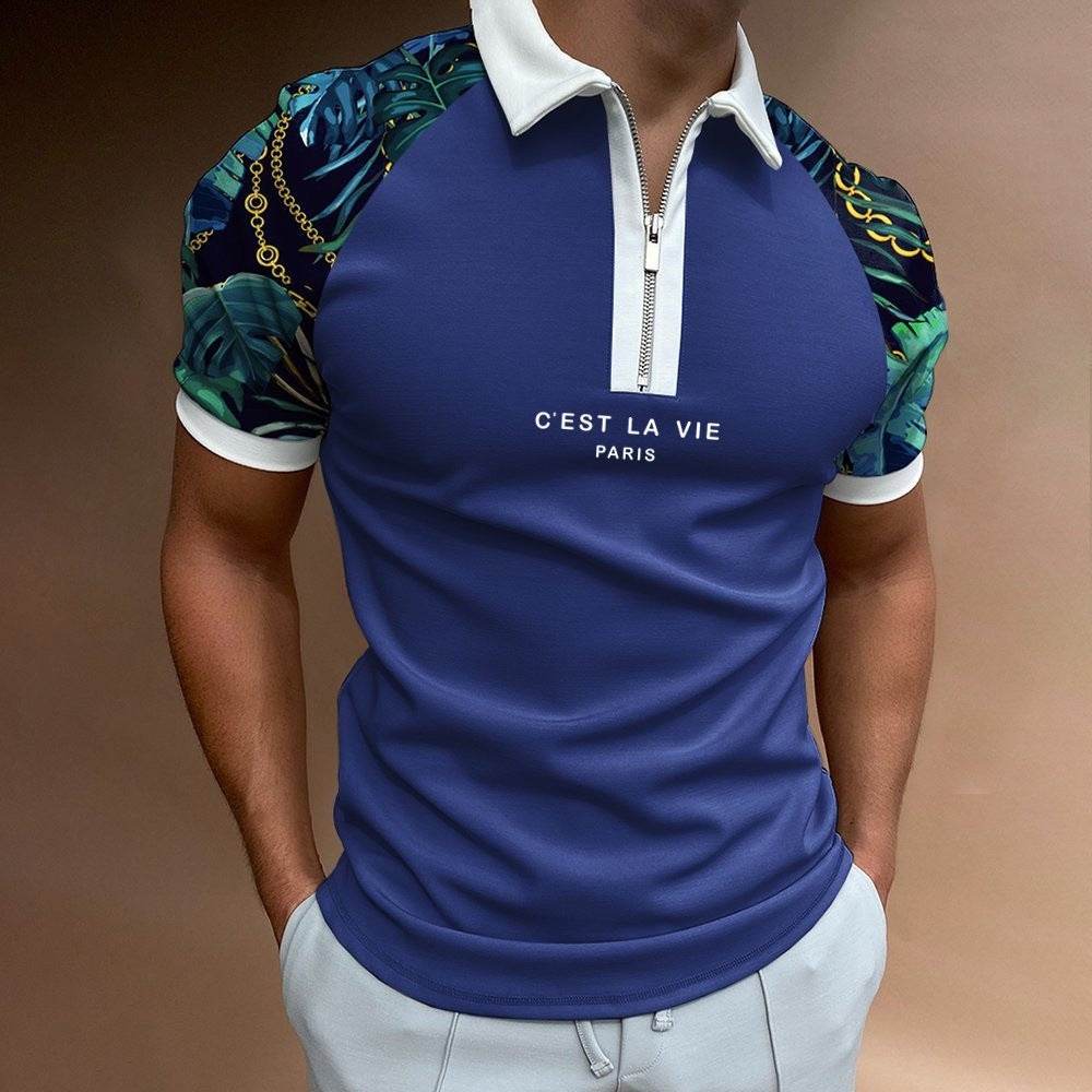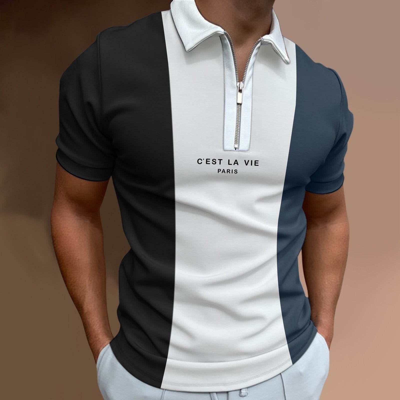 Men's Summer Polo Zipper Color Matching Sports Polo Shirt