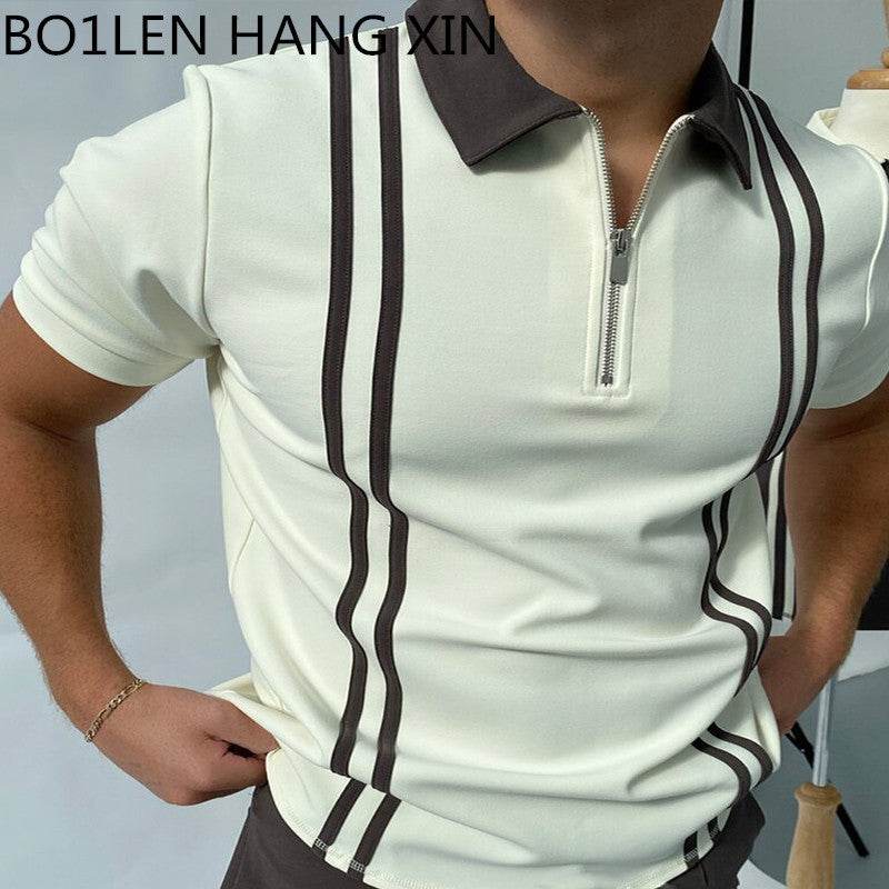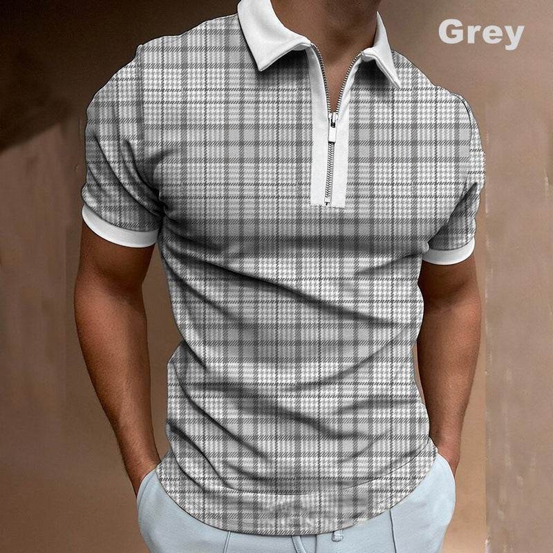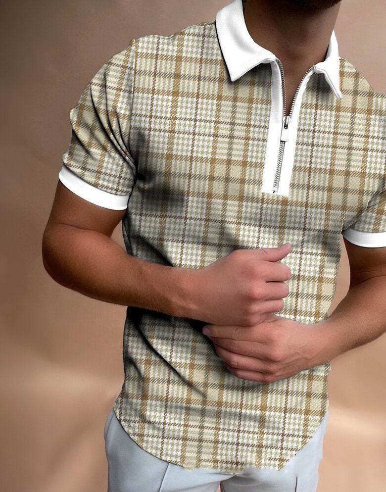 POLO Polo Shirt Zipper Check Men's T-shirt
