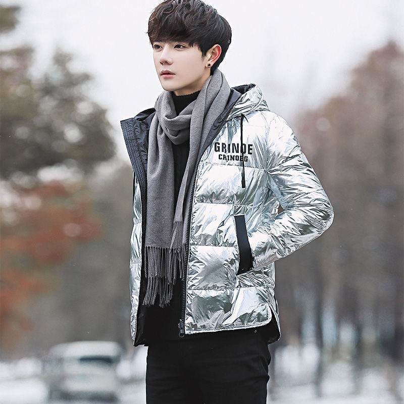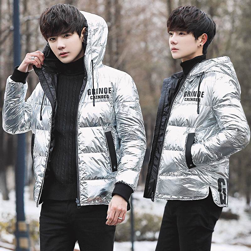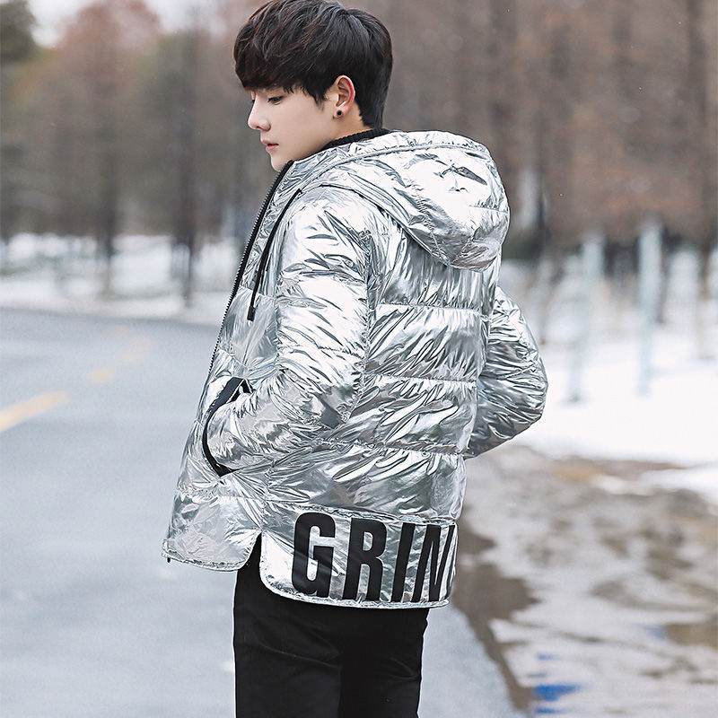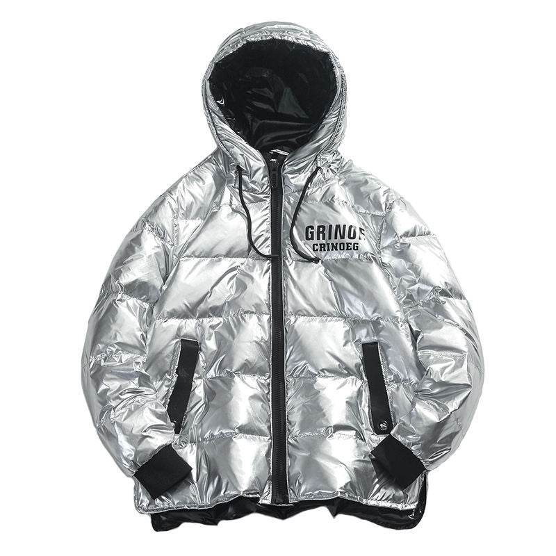 Puffy Silver Shiny Mens Bubble Jacket - Grinoe - Mubimart