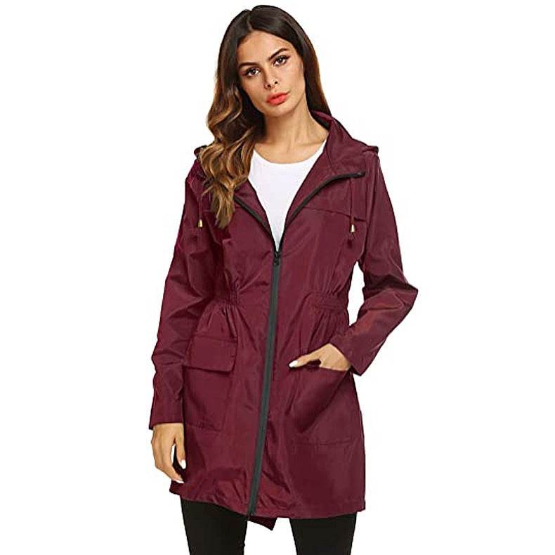 Women's Waist Hooded Raincoat Raincoat Mid-length Trench Coat