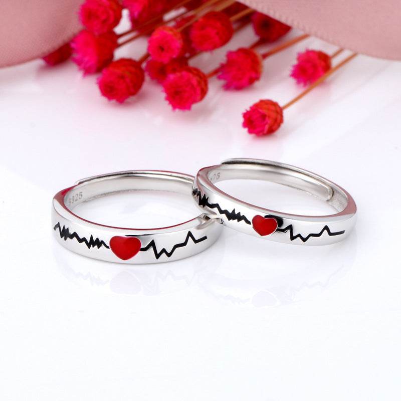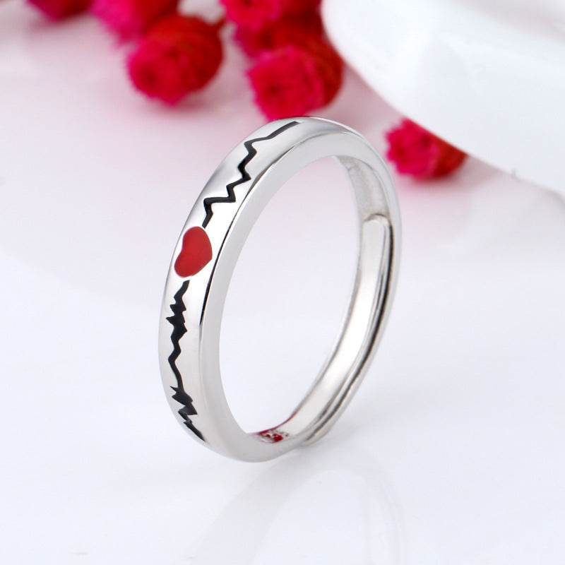 Electrocardiogram Couple Ring Love Adjustable Epoxy Men And Women Pair Ring Simple Ring