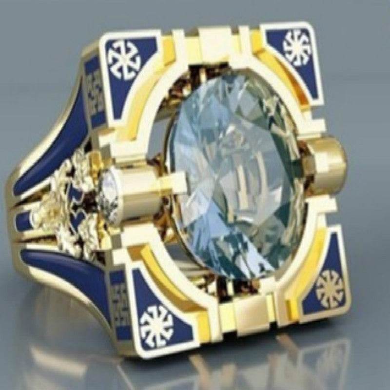 Popular square ring with round white stone ring for men